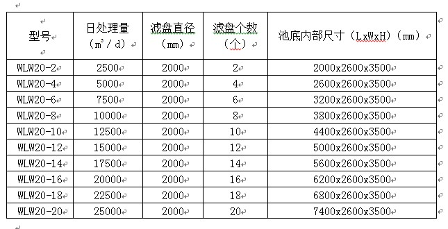 進水指(zhǐ)标:BOD5 ≤20mg/L;CODcr≤60 mg/L;SS ≤20 mg/L;TP≤1.0 mg/L